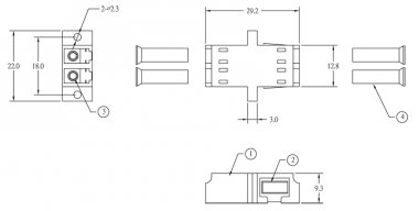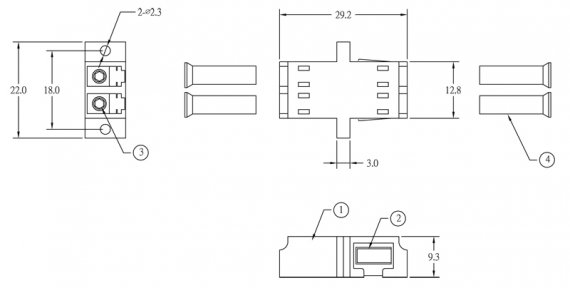 К адаптерам для соединения одномодовых разъемов с угловой полировкой APC предъявляются более жесткие требования в отношении точности центрирования наконечников, чем при полировке PC, UPC. Кроме того, разъемы с полировкой APC не совместимы с разъемами другой полировки, поэтому для цветовой кодировки разъемов и адаптеров с полировкой APC используется зеленый цвет. В зависимости от числа соединяемых разъемов (волокон) адаптеры могут быть симплексными (для соединения одной пары разъемов), дуплексными (для соединения двух пар разъемов) или квадро – для соединения четырех пар разъемов. По заказу доступны адаптеры с защитными шторками на входе оптических розеток. Все адаптеры снабжены пылезащитными колпачками.