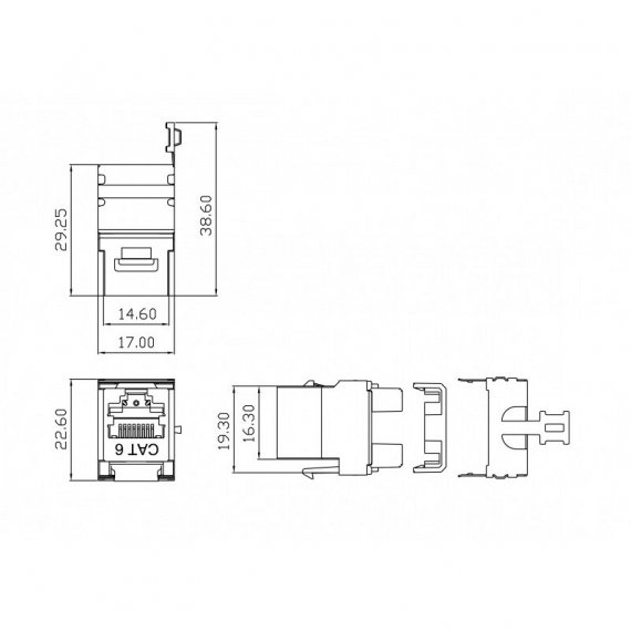 Hyperline 29845 KJ5-8P8C-C6-180-SH-F-WH (High-Bandwidth applications) Вставка Keystone Jack RJ-45(8P8C)