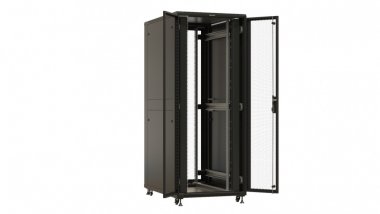 Hyperline TTBR-4281-DD-RAL9004 Шкаф напольный 19-дюймовый, 42U, 2055x800х1000 мм (ВхШхГ), передняя и задняя распашные перфорированные двери (75%), ручка с замком, 2 вертикальных кабельных организатора, цвет черный (RAL 9004 (разобранный)