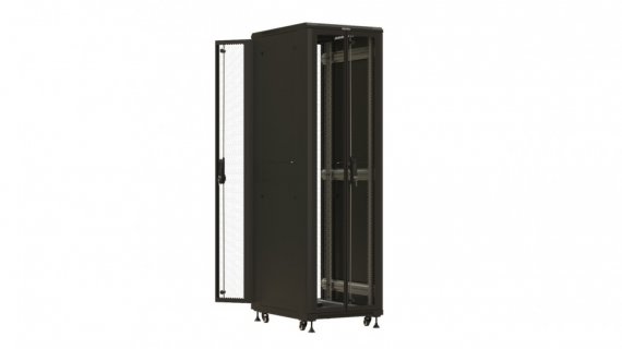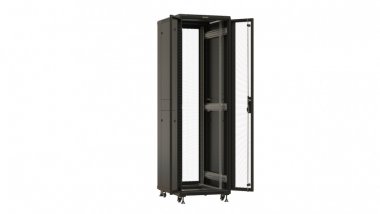 Hyperline TTBR-4261-DD-RAL9004 Шкаф напольный 19-дюймовый, 42U, 2055x600х1000 мм (ВхШхГ), передняя и задняя распашные перфорированные двери (75%), ручка с замком, цвет черный (RAL 9004) (разобранный)