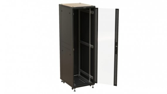 Hyperline TTBR-4268-AS-RAL9004 Шкаф напольный 19-дюймовый, 42U, 2055x600х800 мм (ВхШхГ), передняя стеклянная дверь со стальными перфорированными боковинами, задняя дверь сплошная, ручка с замком, цвет черный (RAL 9004) (разобранный)