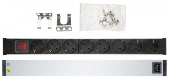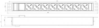 Hyperline 459579 SHZ19-8SH-S-IEC Блок розеток для 19" шкафов, горизонтальный, 8 розеток Schuko
