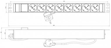 Hyperline 459583 SHZ19-8SH-S-2.5EU Блок розеток для 19" шкафов, горизонтальный, 8 розеток Schuko