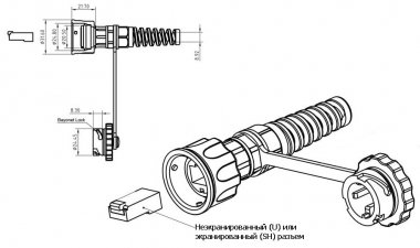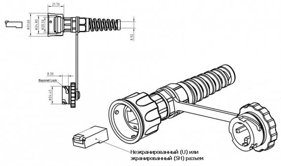 Данные промышленные разъемы представляют собой коммутационные разъемы (вилки) RJ-45 категории 6, заключенные в специальные защитные корпусы из промышленного термопластика. Байонетная конструкция гарантирует соединениям защиту IP67 даже при сильной вибрации. При отключении разъема отверстие порта закрывается защитной крышкой. Идеальное решение для условий высокой влажности и агрессивной промышленной среды. Доступны в неэкранированной (U) и экранированной (SH) версиях исполнения.