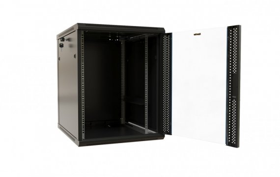 Hyperline TWB-1268-GP-RAL9004 Шкаф настенный 19-дюймовый (19"), 12U, 650x600х800мм, стеклянная дверь с перфорацией по бокам, ручка с замком, цвет черный (RAL 9004) (разобранный)
