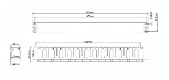 Hyperline 481511 CM-1U-D53-PL-COV Кабельный организатор пластиковый с крышкой, глубина 53 мм, 19", 1U