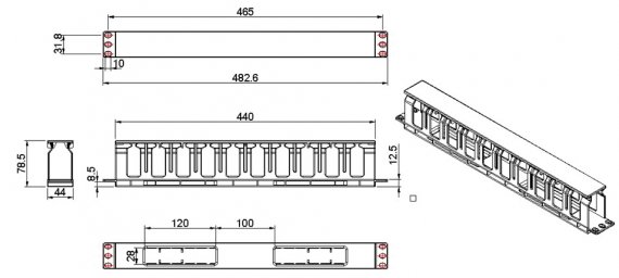 Hyperline CM-1U-D66-PL-COV Кабельный организатор пластиковый с крышкой, глубина 66 мм, широкие вводы, 19", 1U
