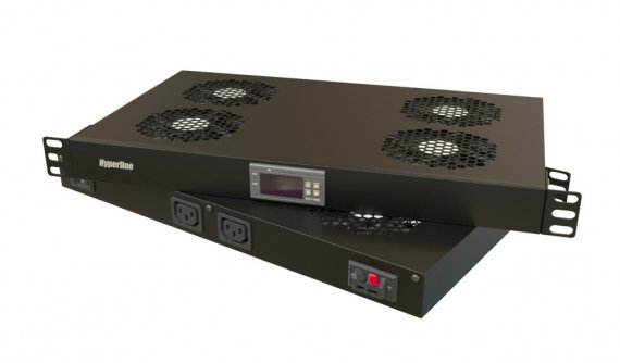 Hyperline TRFA-WB-MICR-4F-RAL9004 Модуль вентиляторный 19", 1U, глубиной 290мм, с термостатом и 4-я вентиляторами, номинальная мощность 70.40 Вт, датчик температуры с кабелем, кабель питания C13-Schuko 1.8м, цвет черный (RAL 9004)