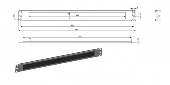 Hyperline BPB19-1U-RAL9004 (BPB19-1U-RAL9005) Фальш-панель на 1U, с щеточным вводом, цвет черный (RAL 9004/RAL 9005)
