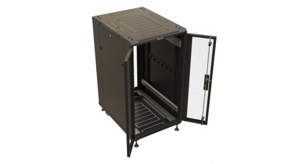 Hyperline TTBR-1868-DD-RAL9004 Шкаф напольный 19-дюймовый, 18U, 988x600х800 мм (ВхШхГ), передняя и задняя распашные перфорированные двери (75%), ручка с замком, цвет черный (RAL 9004) (разобранный)