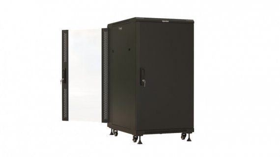 Hyperline TTBR-2768-AS-RAL9004 Шкаф напольный 19-дюймовый, 27U, 1388x600х800 мм (ВхШхГ), передняя стеклянная дверь со стальными перфорированными боковинами, задняя дверь сплошная, ручка с замком, цвет черный (RAL 9004) (разобранный)