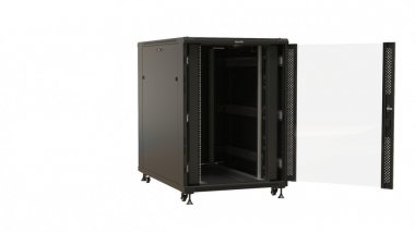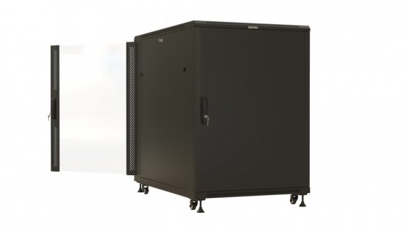 Hyperline TTBR-2786-AS-RAL9004 Шкаф напольный 19-дюймовый, 27U, 1388x800х600 мм (ВхШхГ), передняя стеклянная дверь со стальными перфорированными боковинами, задняя дверь сплошная, ручка с замком, цвет черный (RAL 9004) (разобранный)