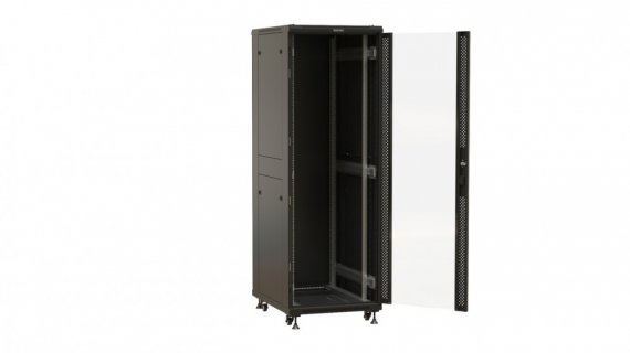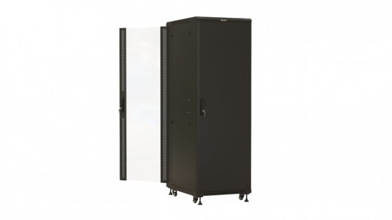 Hyperline TTBR-3268-AS-RAL9004 Шкаф напольный 19-дюймовый, 32U, 1610x600х800 мм (ВхШхГ), передняя стеклянная дверь со стальными перфорированными боковинами, задняя дверь сплошная, ручка с замком, цвет черный (RAL 9004) (разобранный)