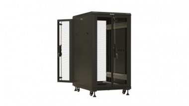 Hyperline TTBR-3766-DD-RAL9004 Шкаф напольный 19-дюймовый, 37U, 1833x600х600 мм (ВхШхГ), передняя и задняя распашные перфорированные двери (75%), ручка с замком, цвет черный (RAL 9004) (разобранный)