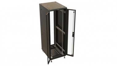 Hyperline TTBR-3768-DD-RAL9004 Шкаф напольный 19-дюймовый, 37U, 1833x600х800 мм (ВхШхГ), передняя и задняя распашные перфорированные двери (75%), ручка с замком, цвет черный (RAL 9004) (разобранный)