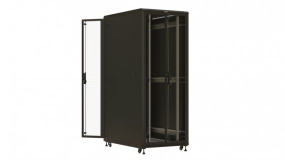 Hyperline TTBR-4288-DD-RAL9004 Шкаф напольный 19-дюймовый, 42U, 2055x800х800 мм (ВхШхГ), передняя и задняя распашные перфорированные двери (75%), ручка с замком, 2 вертикальных кабельных организатора, цвет черный (RAL 9004) (разобранный)