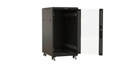 Hyperline TTBR-4766-AS-RAL9004 Шкаф напольный 19-дюймовый, 47U, 2277x600х600 мм (ВхШхГ), передняя стеклянная дверь со стальными перфорированными боковинами, задняя дверь сплошная, ручка с замком, цвет черный (RAL 9004) (разобранный)