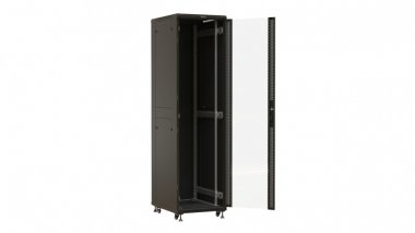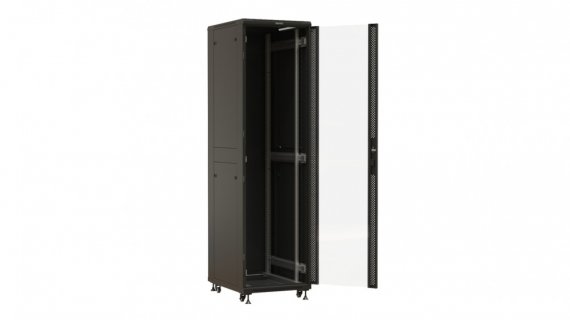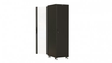 Hyperline TTBR-4768-AS-RAL9004 Шкаф напольный 19-дюймовый, 47U, 2277x600х800 мм (ВхШхГ), передняя стеклянная дверь со стальными перфорированными боковинами, задняя дверь сплошная, ручка с замком, цвет черный (RAL 9004) (разобранный)