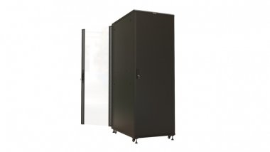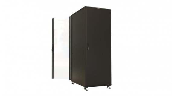 Hyperline TTBR-4788-AS-RAL9004 Шкаф напольный 19-дюймовый, 47U, 2277x800х800 мм (ВхШхГ), передняя дверь стеклянная, задняя дверь сплошная, ручка с замком, 2 вертикальных кабельных организатора, цвет черный (RAL 9004) (разобранный)
