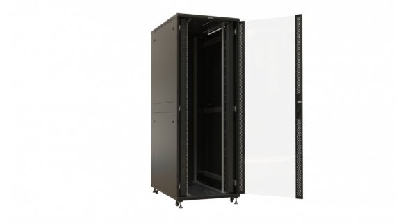 Hyperline TTBR-4782-AS-RAL9004 Шкаф напольный 19-дюймовый, 47U, 2277x800х1200 мм (ВхШхГ), передняя дверь стеклянная, задняя дверь сплошная, ручка с замком, 2 вертикальных кабельных организатора, цвет черный (RAL 9004) (разобранный)