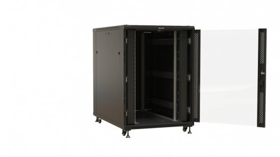 Hyperline TTBR-2281-AS-RAL9004 Шкаф напольный 19-дюймовый, 22U, 1100x800х1000 мм (ВхШхГ), передняя дверь стеклянная, задняя дверь сплошная, ручка с замком, 2 вертикальных кабельных организатора, цвет черный (RAL 9004) (разобранный)