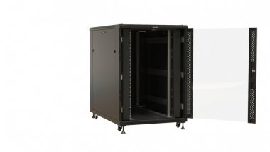 Hyperline TTBR-2788-AS-RAL9004 Шкаф напольный 19-дюймовый, 27U, 1388x800х800 мм (ВхШхГ), передняя дверь стеклянная, задняя дверь сплошная, ручка с замком, 2 вертикальных кабельных организатора, цвет черный (RAL 9004) (разобранный)