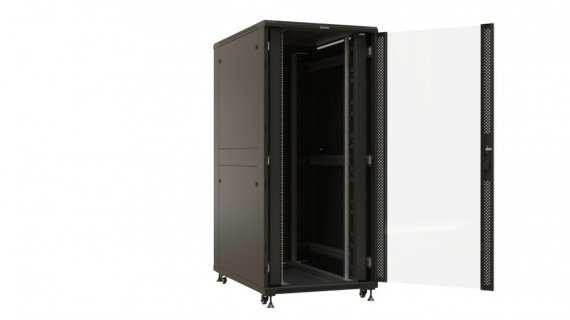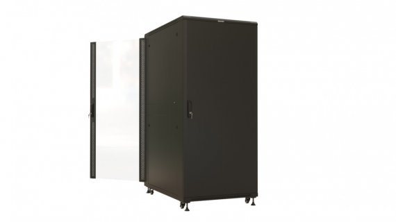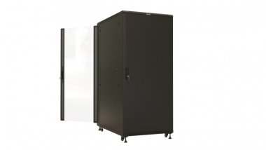 Hyperline TTBR-3781-AS-RAL9004 Шкаф напольный 19-дюймовый, 37U, 1833х800х1000 мм (ВхШхГ), передняя дверь стеклянная, задняя дверь сплошная, ручка с замком, 2 вертикальных кабельных организатора, цвет черный (RAL 9004) (разобранный)