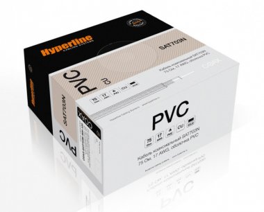 Hyperline COAX-SAT703N-WH-100 Кабель коаксиальный SAT703N, 75 Ом, жила - 17 AWG (1.13 mm, медь,solid), экран - фольга+оплетка (луженная медь, 45%), внешний диаметр 6.6мм, изоляция PVC, белый (бухта 100 м)