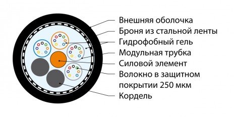 Hyperline FO-AMTC-OUT-9S-96-PE Кабель волоконно-оптический 9/125 (SMF-28) одномодовый, 96 волокон, бронированный стальной лентой, для внешней прокладки