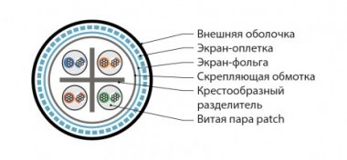 | Общий экран: | алюминизированная полиэстерная пленка и оплетка из медных луженых проволок | |
