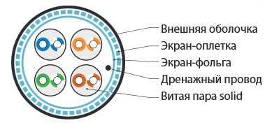 | Конструкция кабеля: | SF/UTP | |