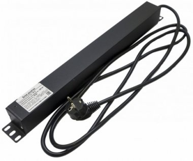 Hyperline SHE19-10IEC-S-2.5EU Блок розеток для 19" шкафов, горизонтальный, с выключателем с подсветкой, 10хIEC 320 C13, 10A, 250В, кабель питания 3х1.5мм2, длина 2.5 м, с вилкой Schuko, 482.6x44.4x44.4мм (ДхШхВ)