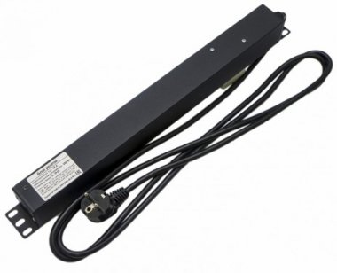 Hyperline Блок розеток для 19" шкафов, горизонтальный, с автоматическим выключателем, 3xSchuko+2xIEC 320 C13, 16A, 250В, SHE19-3SH-2IEC-B-2.5EU