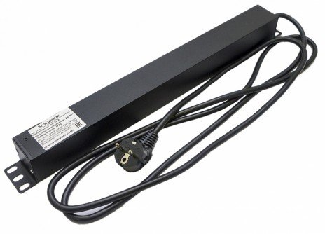 Hyperline SHE19-8IEC-S-2.5EU Блок розеток для 19" шкафов, горизонтальный, с выключателем с подсветкой, 8хIEC 320 C13, 16A, 250В, кабель питания 3х1.5мм2, длина 2.5 м, с вилкой Schuko, 482.6x44.4x44.4мм (ДхШхВ)